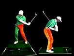 Line indicates correct alignment to effectively keep spine angle and knee reflex constant from address through impact.